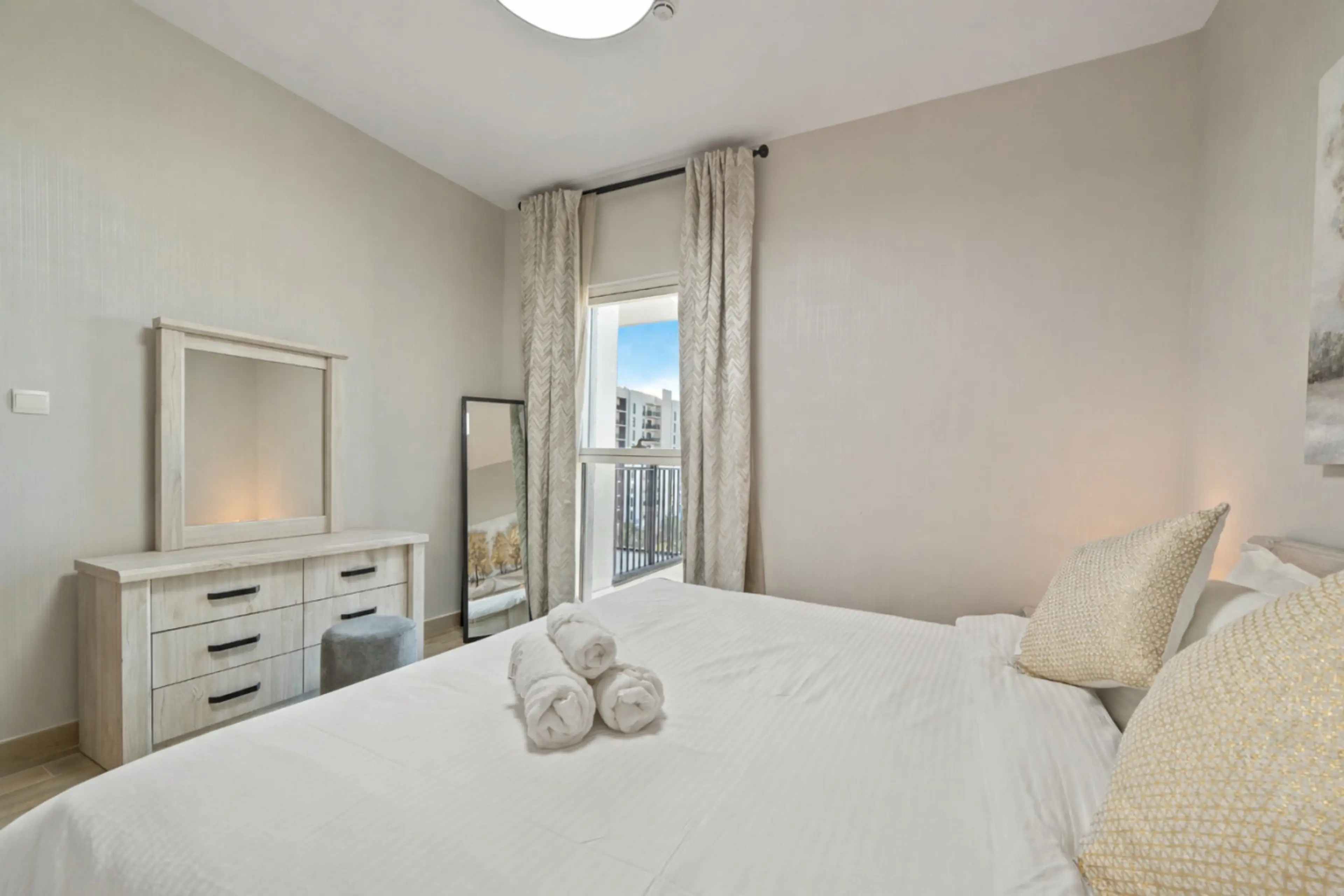 Light 1BR in Water’s Edge with king bed, blackout curtains, smart TV, fast WiFi and private balcony. Fully equipped kitchen with all essentials. • 5 min to Ferrari World • 5 min to Yas Mall • 6 min to Yas Marina Circuit(F1 Grand Prix) • 7 min to Etihad Arena • 8 min to Yas Beach • 10 min to Abu Dha...